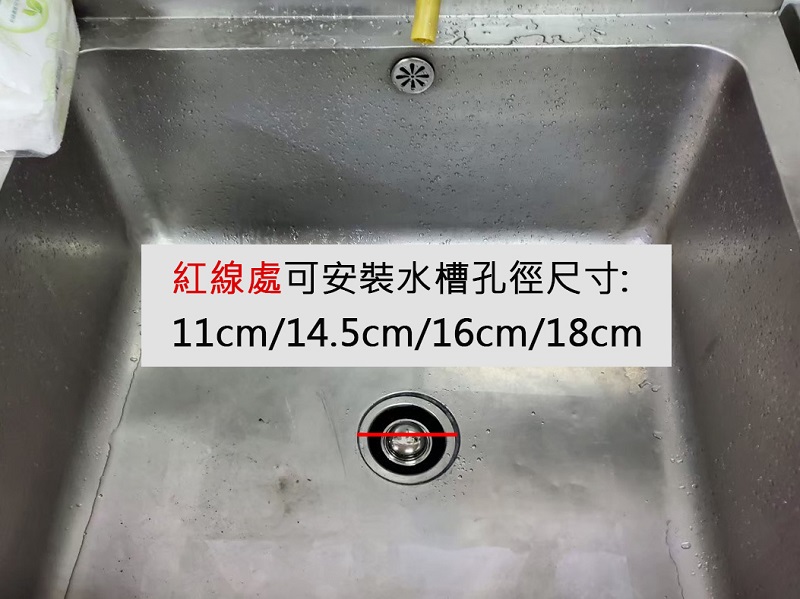 排水口最外徑公分數為通規尺寸,一般不銹鋼水槽90%以上可順利安裝。
